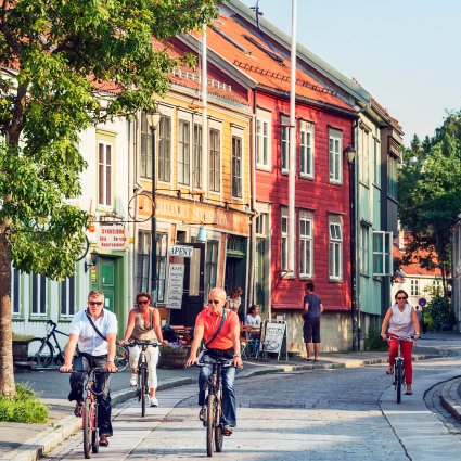 Trondheim, som är känd som den mest cykelvänliga staden i landet, bjuder in dig att utforska stadskärnan på cykel.
