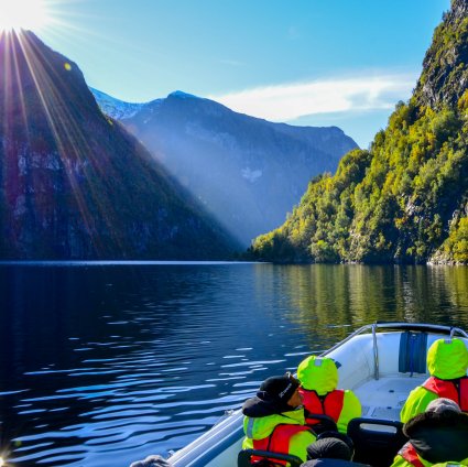 Kom nära naturen i Aurlandsfjorden och den UNESCO-skyddade Nærøyfjorden. Följ med på äventyr med RIB-båt och njut av hisnande fjordlandskap. Den kunniga guiden delar med sig av lokala sägner och du får en unik inblick i byarna och livet längs fjorden.